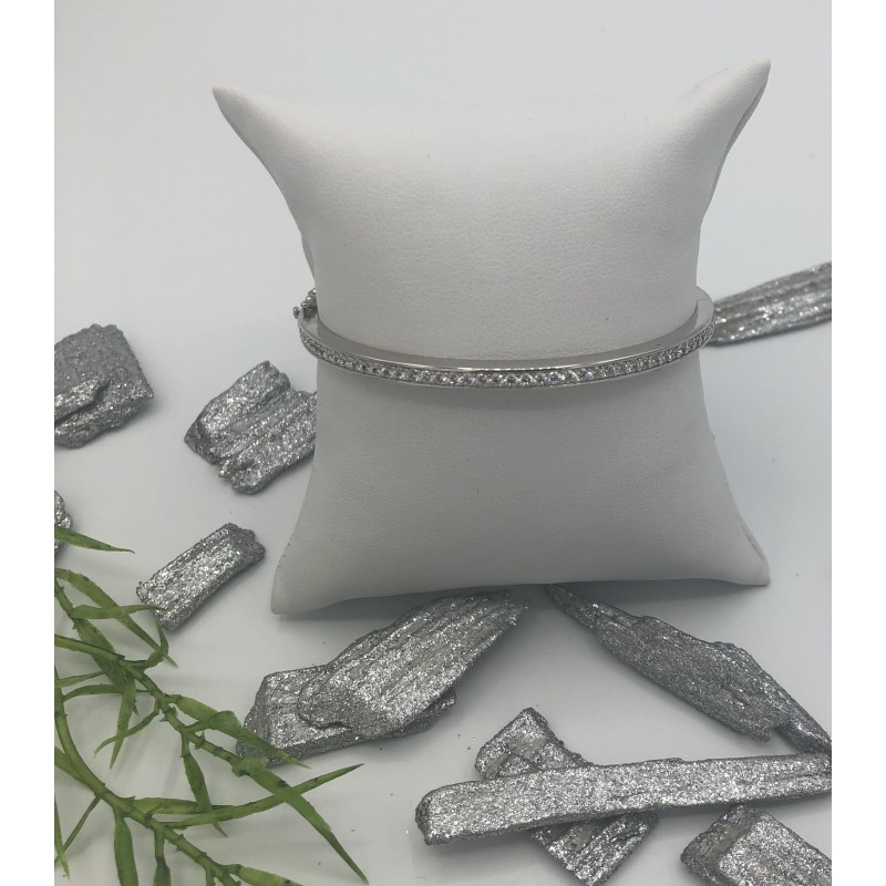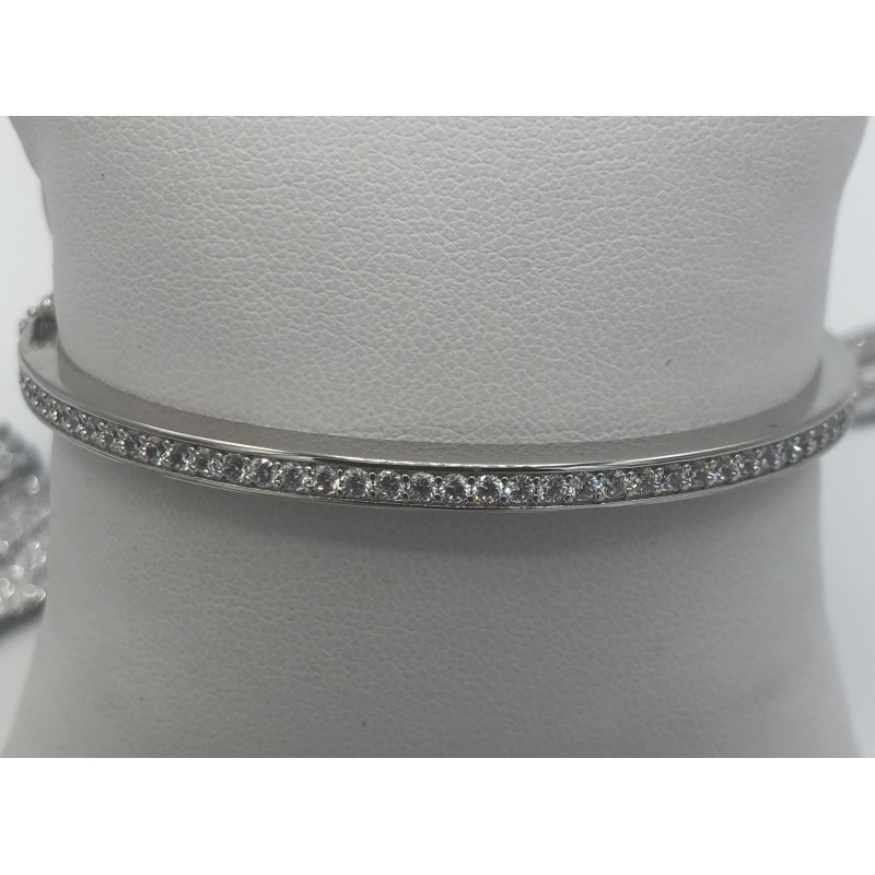 Deze prachtige ZinZi slavenarmband is 3.5 mm breed en is aan de voorzijde bezet met een rij zirkonia's. De achterzijde van de armband is egaal zilver en de binnenzijde aan de voorzijde vol met ZinZi hartjes. De armband is voorzien van een luxe scharniersluiting met veiligheidssluiting. De armband heeft een standaardmaat van 60 mm diameter. De slavenarmband is gemaakt van sterling zilver 925 en heeft een extra rodium laag voor een langdurige schittering.