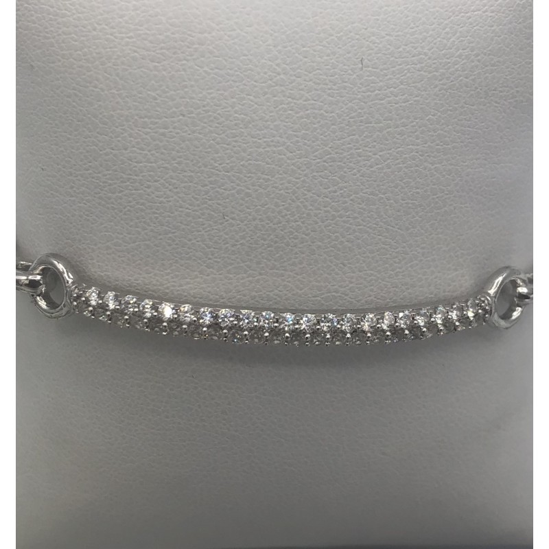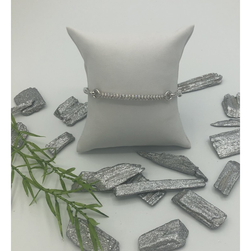 ZinZi zilveren bangle armband met een scharniersluiting met veiligheidsslotje. De armband is 3.5 mm breed en in het midden vol bezet met twee rijden witte zirkonia's. Aan beide zijden verrijkt met twee open rondjes, die in elkaar grijpen. De armband is gemaakt van sterling zilver 925 en voorzien van een extra rodium laag voor een langdurige glans.
