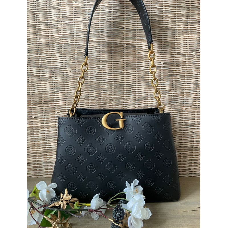 Deze Guess schoudertas met all-over print uit de G Vibe collectie is een echt schitterende beauty. Aan de voorzijde van de tas is een prachtige G verwerkt. De tas bestaat uit twee hoofdvakken. De scheidingswand is met een ritssluiting. De tas heeft een magneetsluiting. De grove schakelketting aan de schouderband is wel een echte eye catcher. De schouderband is afneembaar.