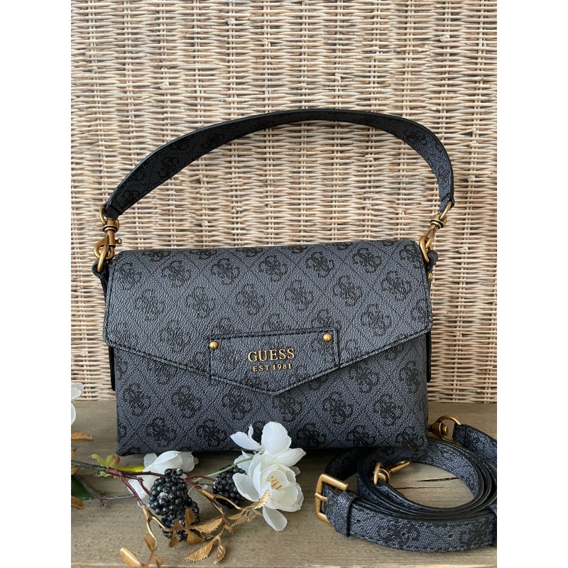 Is ze niet beeldschoon deze mini Guess schoudertas uit de Eco Brenton collectie? Deze betoverende tas heeft een all-over print en een prachtig Guess logo aan de voorkant. De tas heeft een hoofdvak met daarop een voorvak en sluit met een magneetsluiting. Het hengsel en de schouderband zijn beide afneembaar. De tas is afgewerkt met goudkleurige details. Op de achterzijde van de tas zit een extra vak met rits.
