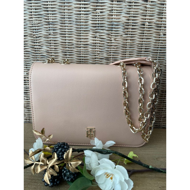Een chique gala in het vooruitzicht dan moet je deze crossover even in overweging nemen. De Tommy Hilfiger Timeless Chain is een juweeltje. Aan de voorzijde een keurig embleem. De tas heeft een hoofdvak en sluit met een drukknopsluiting. Aan de binnenzijde bevinden zich nog twee kleinere vakjes. De schouderband is deels gemaakt van een fantastische fijn geschakelde ketting. Deze is enkel en dubbel te dragen, niet afneembaar.