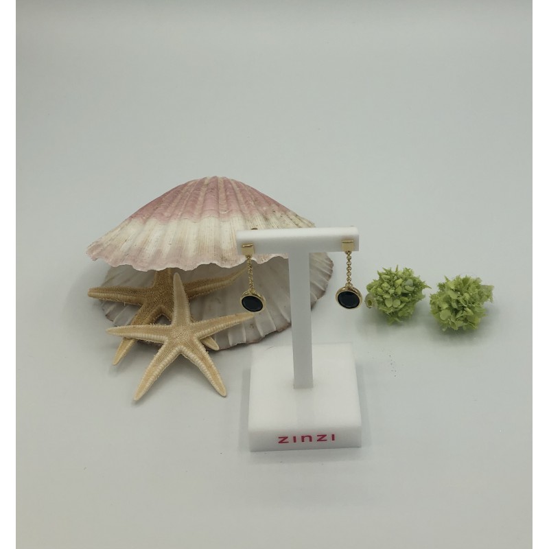 Deze goldplated oorsieraden zijn goldplated en hebben een mooie ronde zwarte kleursteen, bungelend aan een Jasseron kettinkje. De oorsieraden zijn 30 mm lang en vervaardigd van eerste gehalte zilver (925) en extra verguld met 14K geelgoud.