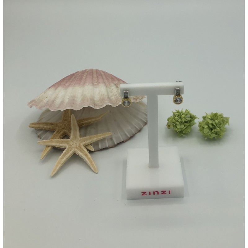 Deze goldplated oorstekers een grote witte zirkonia. Het bovenste gedeelte van de oorknoppen is goldplated en bezet met een grote zirkonia. Het bovenste gedeelte van de oorknoppen is bezet met drie rijen witte zirkonia's. De oorstekers zijn vervaardigd van eerste gehalte zilver (925) en verguld met 14K geel goud.