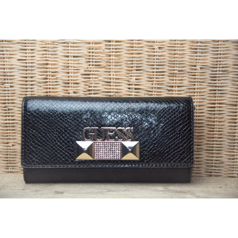 Zwarte Guess clutch met slangenprint